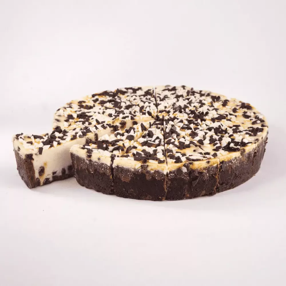 Сливочный чизкейк на основе коржа из шоколадного песочного печенья и нежной сырной массы, дополненной хрустящими каплями из молочного, темного и белого шоколада.