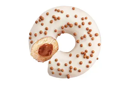 Донат с карамельной начинкой, покрытый сахарной глазурью.