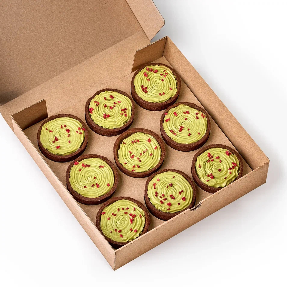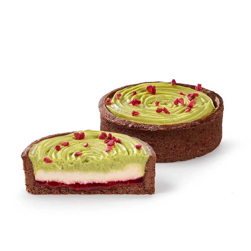 Состав: крем на растительных маслах «Творожный» (заменитель молочного жира, молочная сыворотка подсырная, молочный белок, соль поваренная пищевая, загуститель модифицированный, крахмал, сорбат калия, стабилизатор Е1442), мука пшеничная хлебопекарная, сахар, маргарин «Столовый с Молочным вкусом и ароматом» 82% (рафинированные дезодорированные масла в натуральном и модифицированном виде (пальмовое масло и его фракции, подсолнечное масло), вода питьевая, эмульгаторы (Е471, Е475), соль пищевая, ароматизатор «Сливки-молоко», краситель Е160а, регулятор кислотности - лимонная кислота), малина быстрозамороженная, крем сливочный «сливки для взбивания» ультрапастеризованные (сливки нормализованные, стабилизатор - каррагинан), яйцо куриное, крем на растительных маслах (вода, заменитель какао нетемперируемый лауринового типа (рафинированное, дезодорированное растительное масло, эмульгатор соевый лецитин) сахар, молочный белок, стабилизатор Е466, эмульгатор (Е400(i), Е 472b, E472e), влагоудерживающий агент Е 420(ii), регулятор кислотности Е339 (ii), соль поваренная пищевая, ароматизатор « Сливочная ваниль»), паста ядер орехов фисташки обжаренных (ядра орехов фисташки обжаренные, сахар, жир растительный, ароматизатор), глюкозный сироп (глюкозный сироп из кукурузы), какао – порошок алкализованный с пониженным содержанием жира, вода питьевая, модифицированный крахмал (холоднонабухающий крахмал из восковой кукурузы), разрыхлитель теста двойного действия (разрыхлитель (Е450i, E500ii, E341i) кукурузный крахмал, агент антислеживающий (Е170), регулятор кислотности (Е330)), соль, лимонная кислота, сорбат калия, сода пищевая.